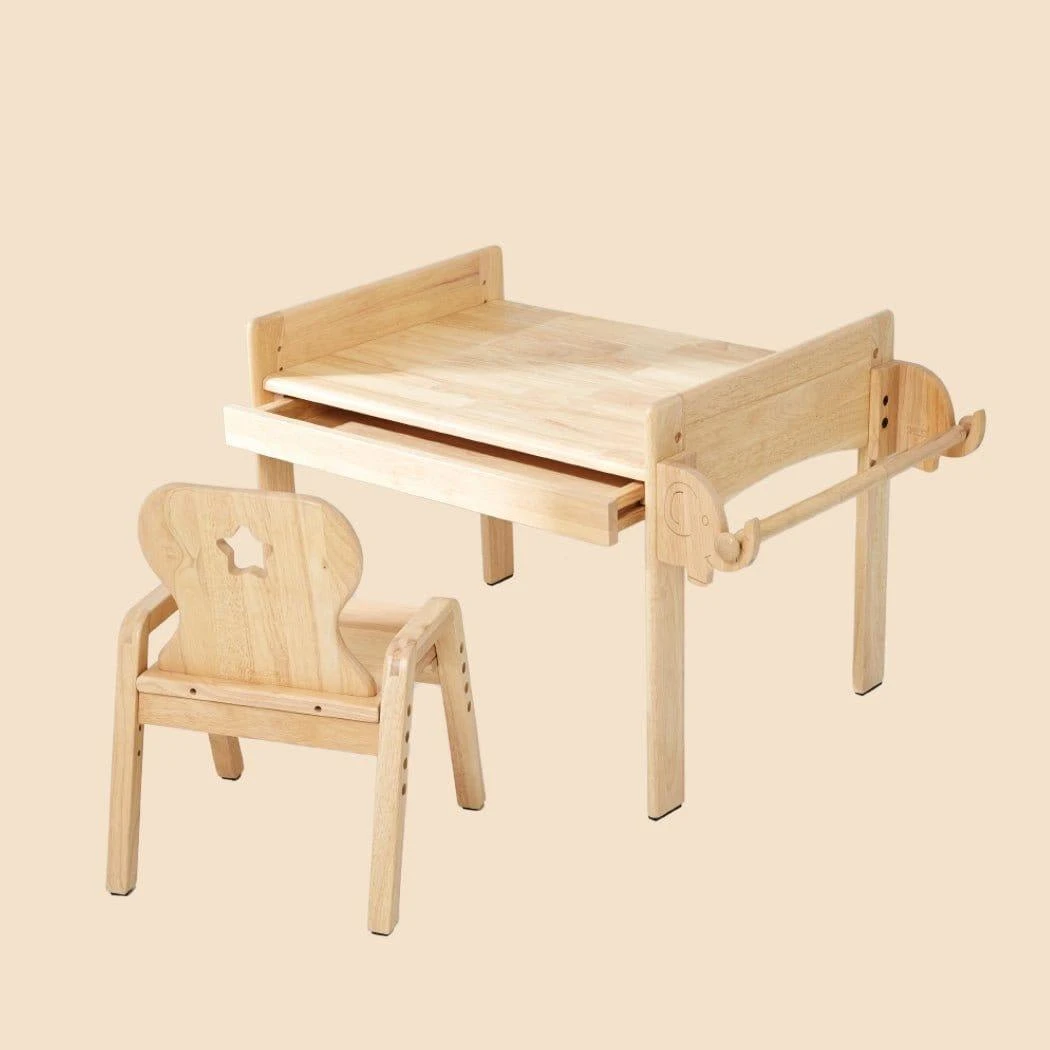 The sturdy table and chair are expertly crafted from solid rubber wood with smooth surface and rounded corners to allow kids to safely move about.Â