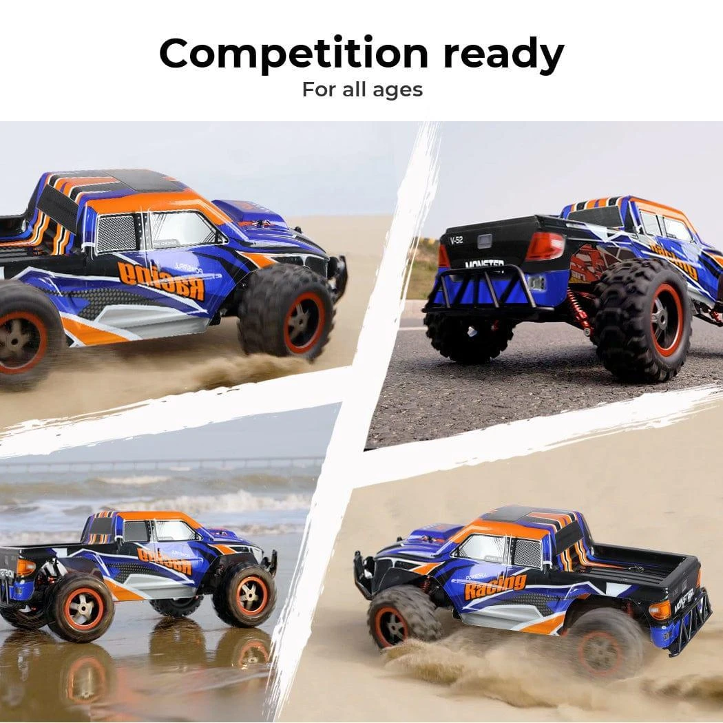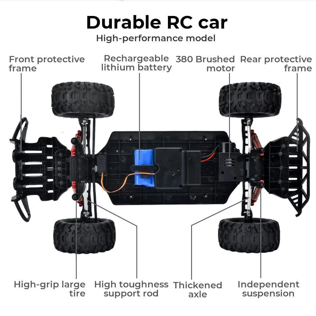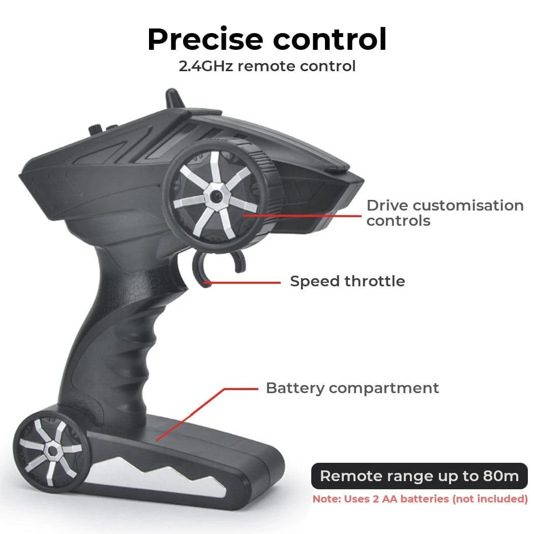 Control your RC car with the 2.4Ghz remote. A light touch means small turns. Heavy adjustment for a heavy turn. Your remote car responds crisply to your speed and direction changes.