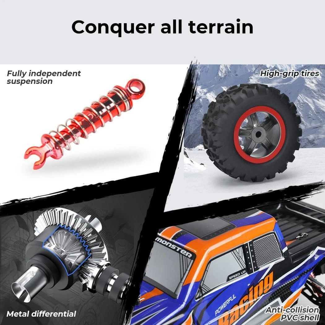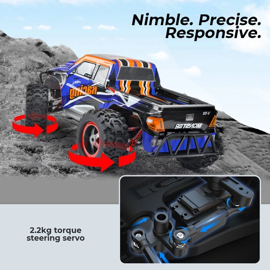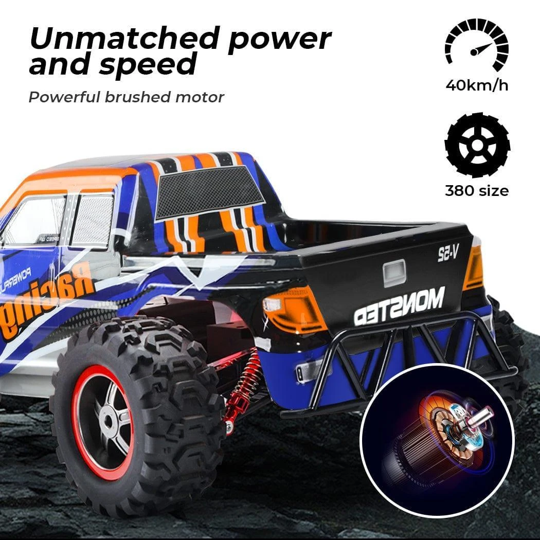 Control your RC car with the 2.4Ghz remote. A light touch means small turns. Heavy adjustment for a heavy turn. Your remote car responds crisply to your speed and direction changes.