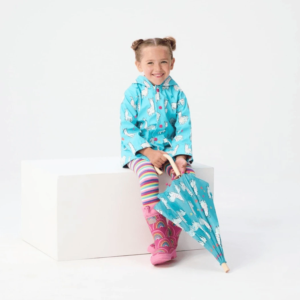 Rainy days mean splashing in puddles, chasing rainbows and wearing colourful raincoats! The lively colours and fun prints will keep them happy while the fully lined interior design will keep them cozy and dry.