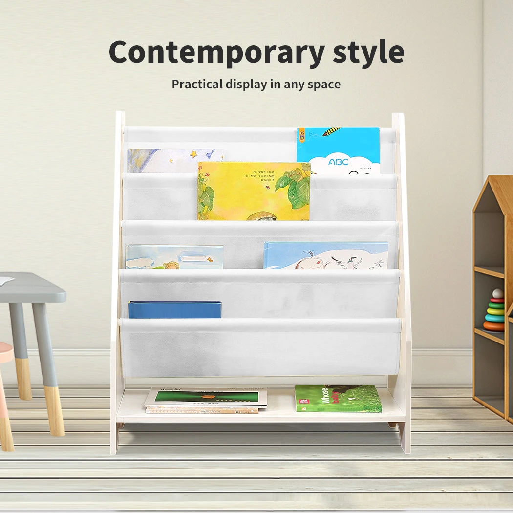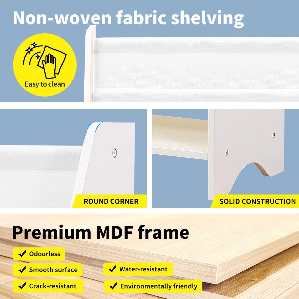 Store and organise your child’s ever-growing book collection with our Kids Bookshelf. 4-tier design with an open bottom shelf, perfect for books, magazines and even colouring books. Made from premium MDF board for a durable and solid structure. Round corner and non-toxic paint finish are made to be child safe. Non-woven fabric shelving is easy to clean and maintenance. It’s just what you need to keep your child’s collection in order, cultivate your kids reading habit!