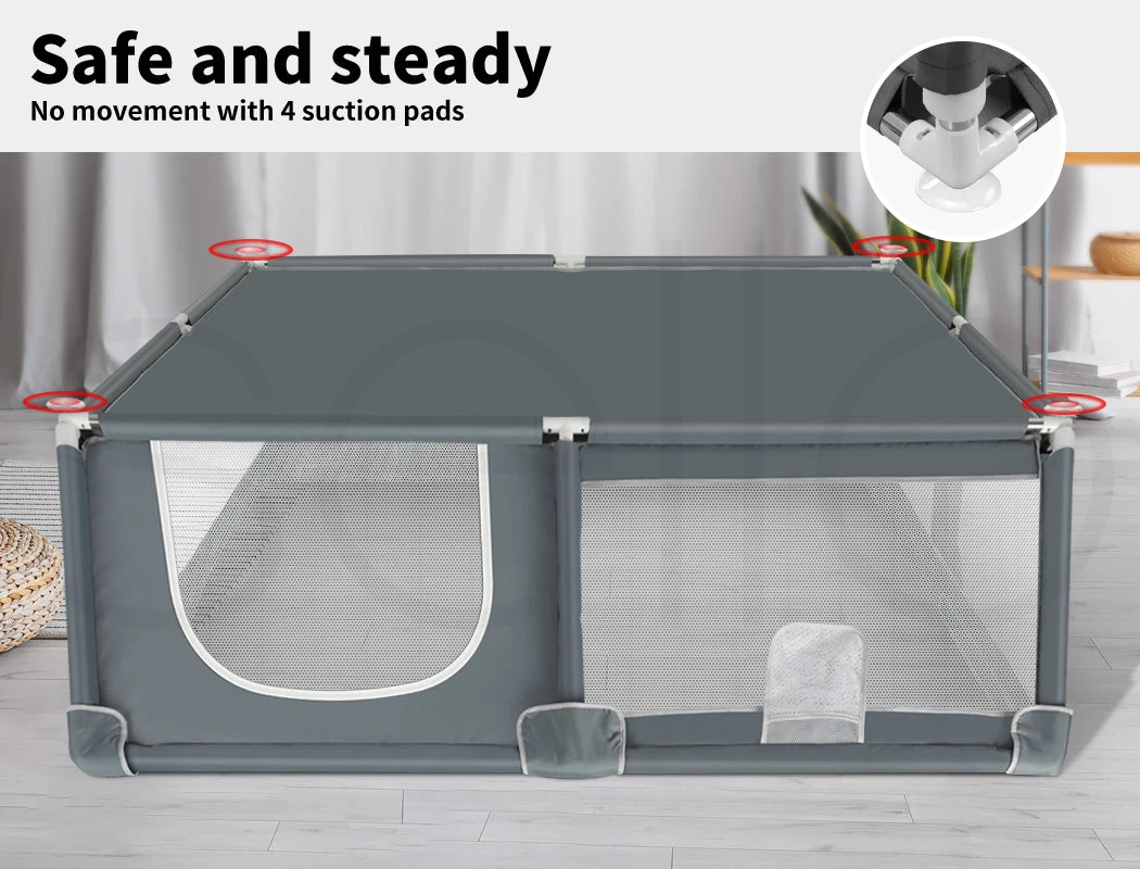 Keep your playpen locked firmly in place. The suction pads stop your infant slide their play pen around the floor. Safety is the name of the game.