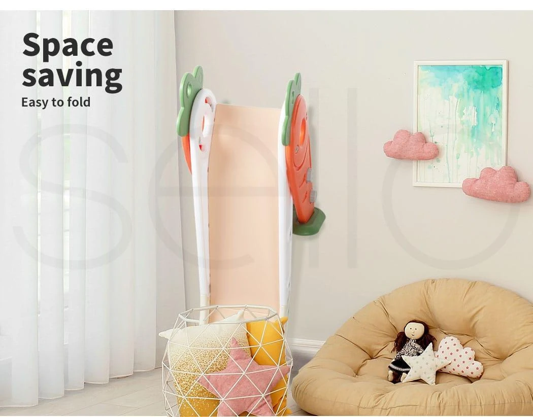 Help your child build motor skills while having fun. Place their kids slide in your living room. Give them some balls and toys to push down the slide.