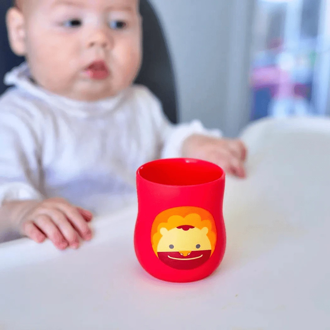 Maybe your little one likes to mimic you from drinking from a glass. The size of the cup holds 4 oz. of water which is not too heavy as a starter, the cup is designed with contour edge offers natural fit for little hands. And the wide base design helps to prevent from easy tipping. Choose from Marcus the Lion Cub, Pokey the Piglet, Lola the Giraffe, Ollie the Elephant, Willo the Whale and Lucas the Hippo.