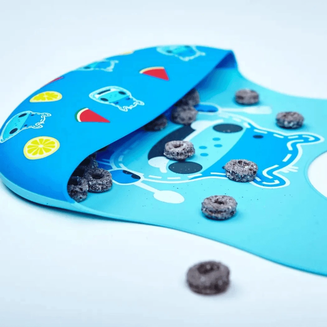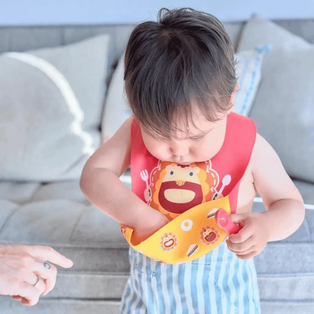 Keep food off your messy little ones. Parents know the developmental benefits of messy eating for little ones and thanks to Marcus & Marcus Wide Coverage Silicone Bib that makes cleaning easier.