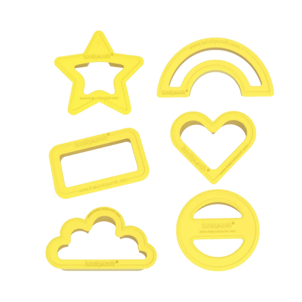 The Mini Bites Cutters are a set of six shapes: Circle, Cloud, Heart, Rainbow, Rectangle and Star. Pair different shapes together to create cool food art. Limited only by your imagination, the possibilities are endless!
