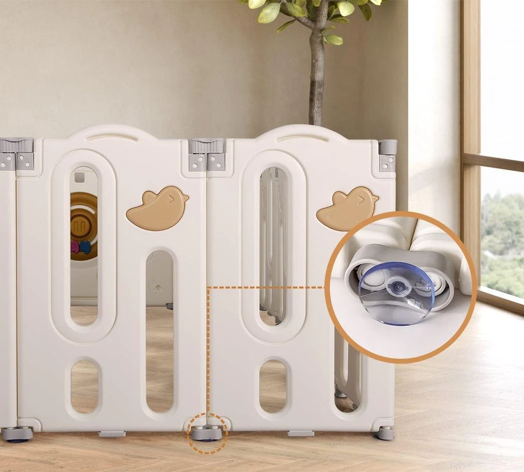 Keep your playpen locked firmly in place. The suction cups stop your infant sliding their play pen around the floor. Safety is the name of the game.