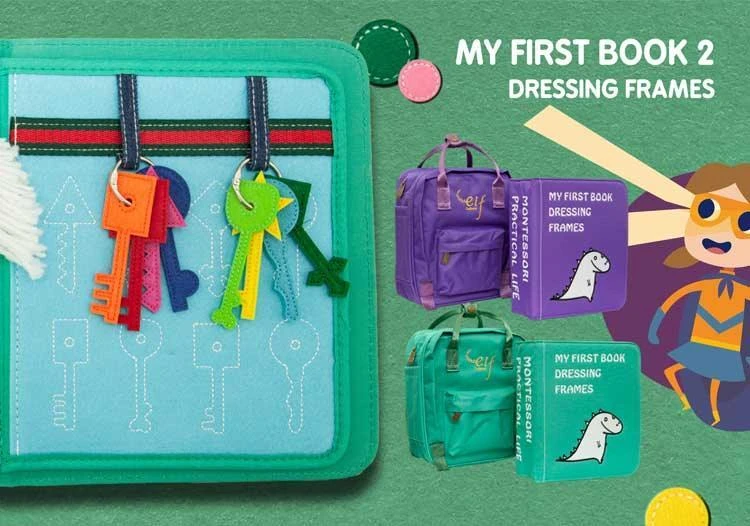 “My First Book 2: Dressing Frames” is not just a kids’ book or a felt activity book; it’s a valuable resource for parents seeking to promote their child’s autonomy and self-sufficiency. With its Montessori approach and interactive design, this book nurtures practical life values while offering an engaging learning experience.